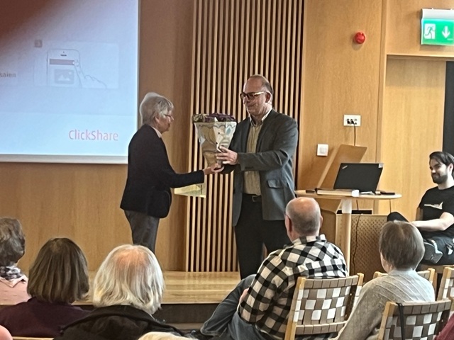 Robert tackades med en varm applåd och en blomma varefter vi gick ner i kaféet och lugnade nerverna med en kopp kaffe med dopp.