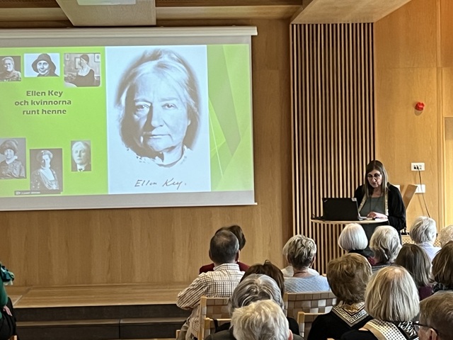 122 medlemmar hade kommit till Domkyrkocentrum denna eftermiddag för att höra bibliotekarie Ella Styf berätta om den ikoniska Ellen Key. Extra fokus riktas mot Ellen Key just i år eftersom det är 100 år sedan hon dog i en ålder av 76 år.